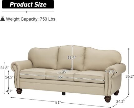 Classic 3-Seater Sofa with Premium Leather Upholstery, Stylish & Comfortable Sofa for Living Room or Office, Easy to Maintain & Long-Lasting Beige