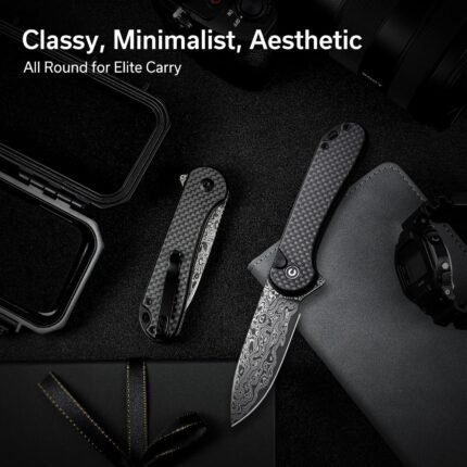CIVIVI Elementum II Pocket Folding Knife, 2.96″ Damascus Blade Utility Knife with Deep Carry Pocket Clip for EDC C18062PB-DS1