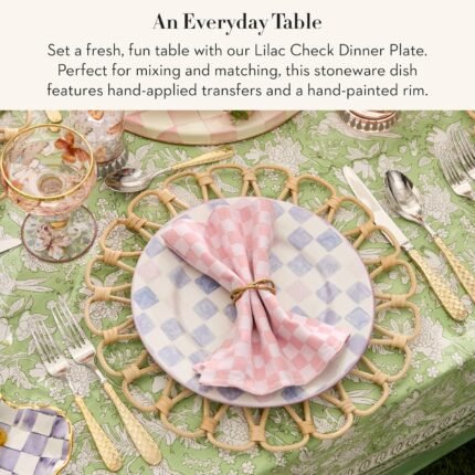 MACKENZIE-CHILDS Stoneware Dinner Plate, Dishwasher- and Microwave-Safe Plate, 11 Inches, Lilac Check