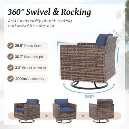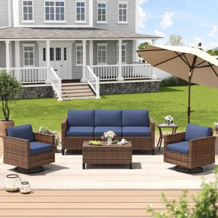 Amopatio Patio Furniture Set, Wicker Outdoor Sectional Sofa Sets, 7 Pieces Rattan Conversation Set with Storage Table, Swivel Chairs Include Waterproof, (Navy)