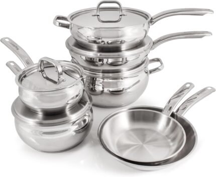 BergHOFF Belly Shape 18/10 Stainless Steel 12Pc Cookware Set, Metal Lids, Fast, Evenly Heat, Induction Cooktop Ready
