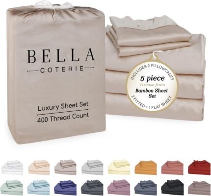 Bella Coterie Luxury Bamboo Viscose Split King Size Sheet Set | 2 Fitted Sheets for Sleep Number & Adjustable Beds | 100% Organically Grown | Cooling & Ultra Soft | 18” Deep Pocket [Dune]