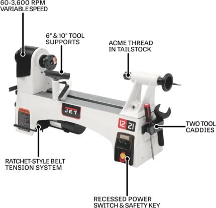 JET 12″ x 21″ Variable-Speed Woodworking Lathe, 1 HP, 115V 1Ph (JWL-1221VS)
