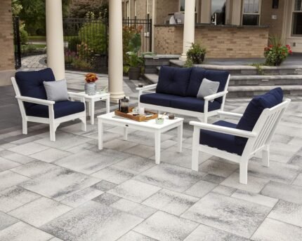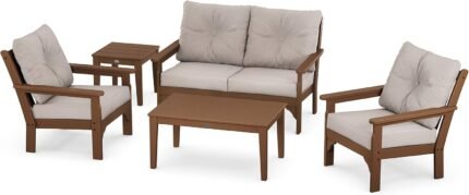 POLYWOOD® Vineyard 5-Piece Deep Seating Set in Teak/Dune Burlap