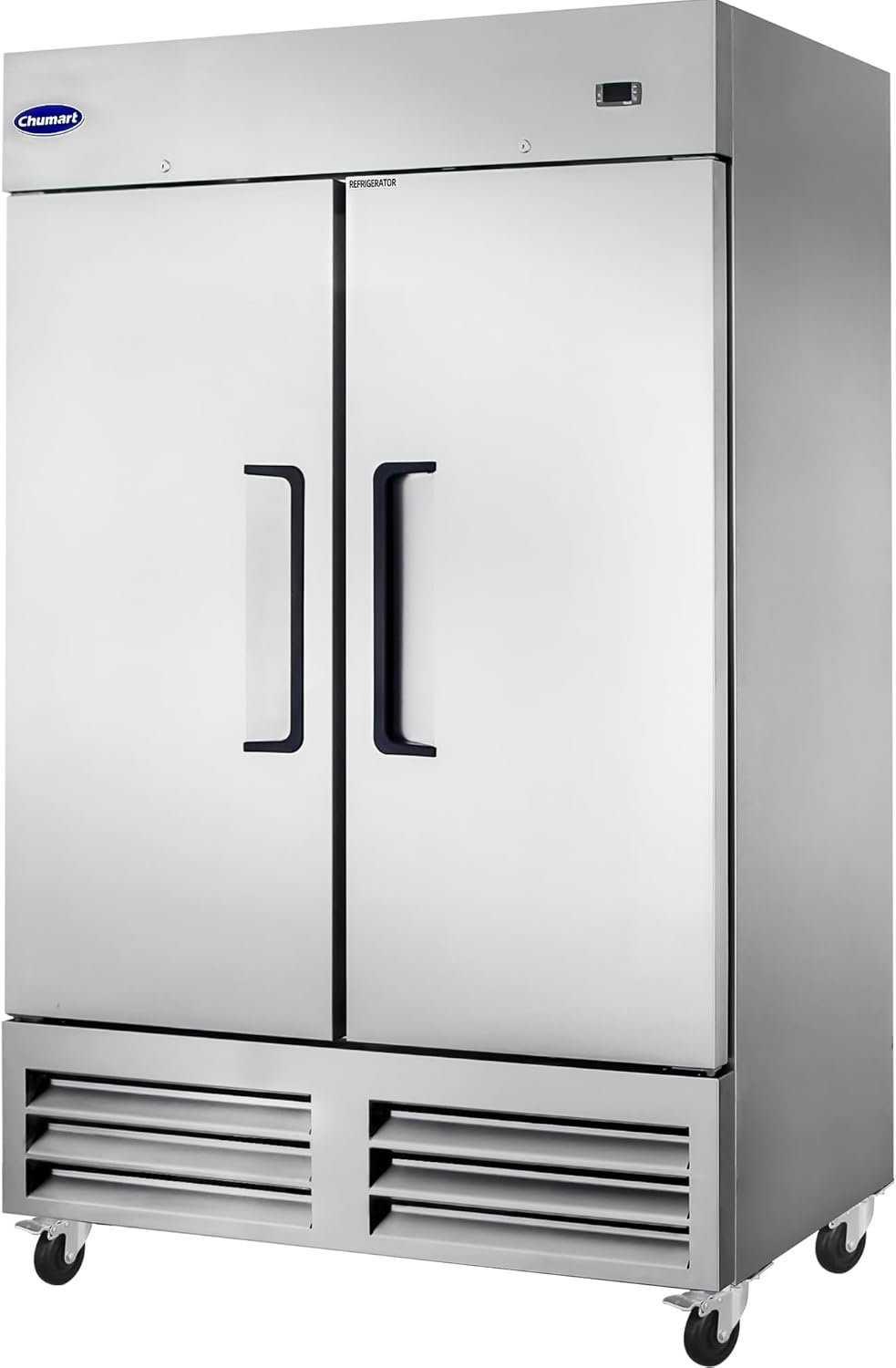 【Dimensional & Capacity】CHUMART’s commercial refrigerators are sleek and aesthetic, with a 2 door refrigerator featuring classic dimensions of 54“ W x 32.7” D x 82.3” H and a large 49 Cu. ft. interior capacity. 6 Adjustable shelves allow you to layout the space inside the refrigerator according to your needs