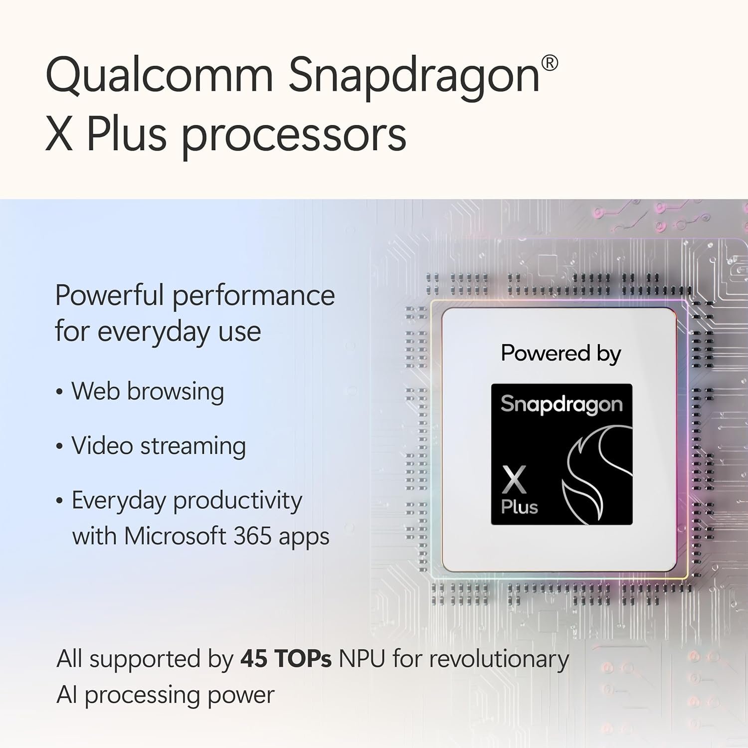 [Incredibly Fast and Intelligent] — Powered by the latest Snapdragon X Plus processor and an AI engine that delivers up to 45 trillion operations per second — for smooth, responsive, and smarter performance.