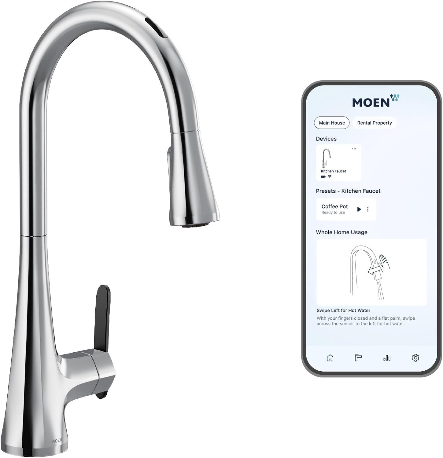 5 reviews for Moen Sinema Chrome Smart Faucet Touchless Pull-Down Sprayer Kitchen Faucet with Voice and Motion Control, S7235EV2C