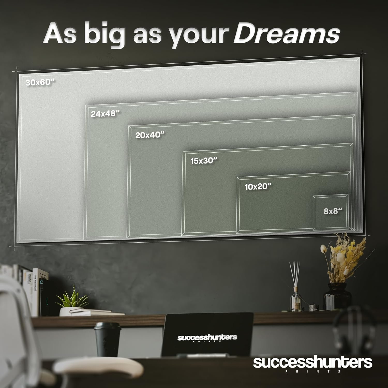 Lifetime Warranty – Success Hunters Prints are all set and ready to ship these exclusive canvas arts for entrepreneurs straight to you. Remember you get a 100% satisfaction, lifetime warranty, so this decision is Risk-Free! Join our hub of motivated, inspired, successful peeps, and select your canvas art now >>