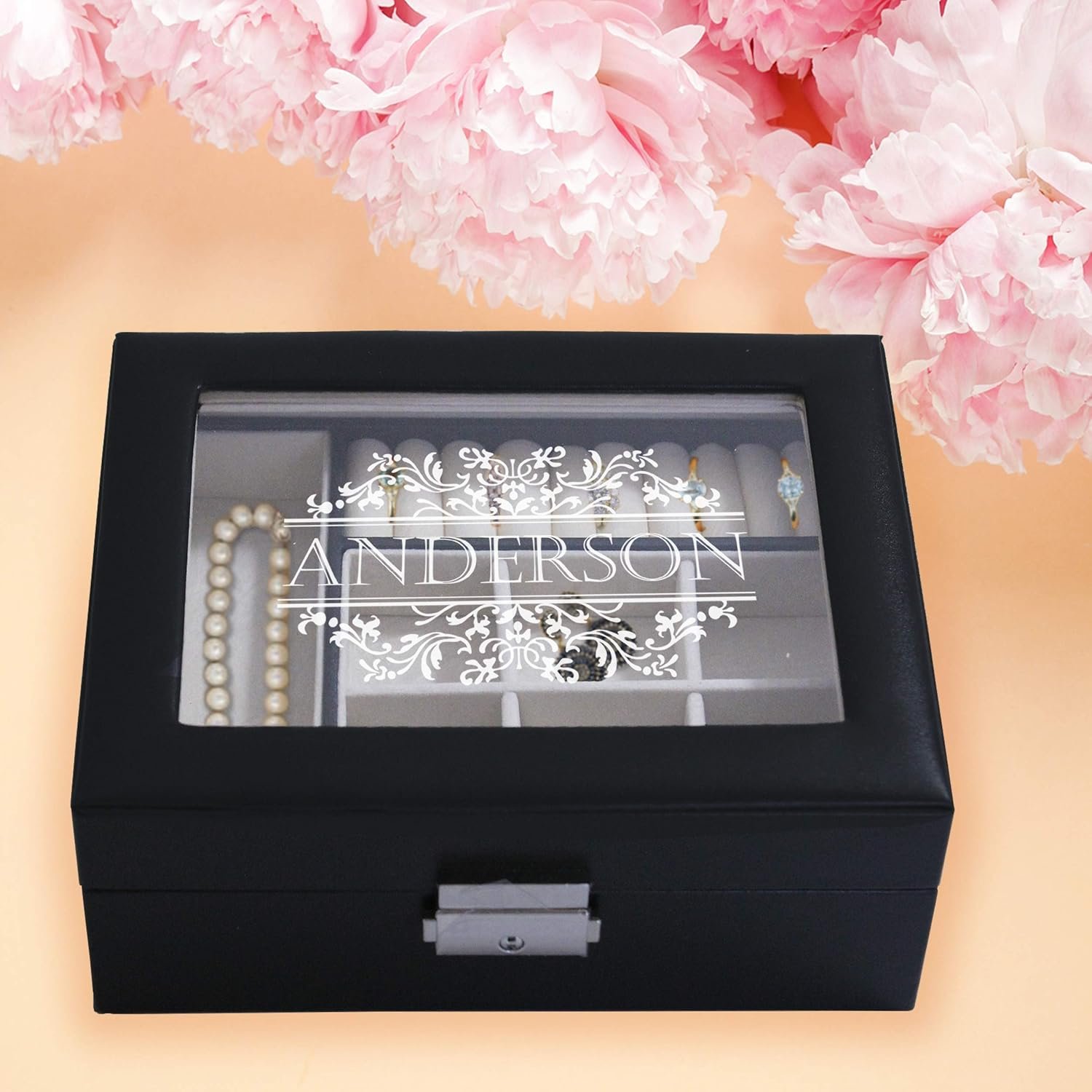8 reviews for My Personal Memories Custom Personalized Jewelry Box, Tray & Organizer with Glass Top – Customized and Engraved Accessories Gift for Mom, Wife, Her (Medium 7.5″ X 6″, Midnight Black)