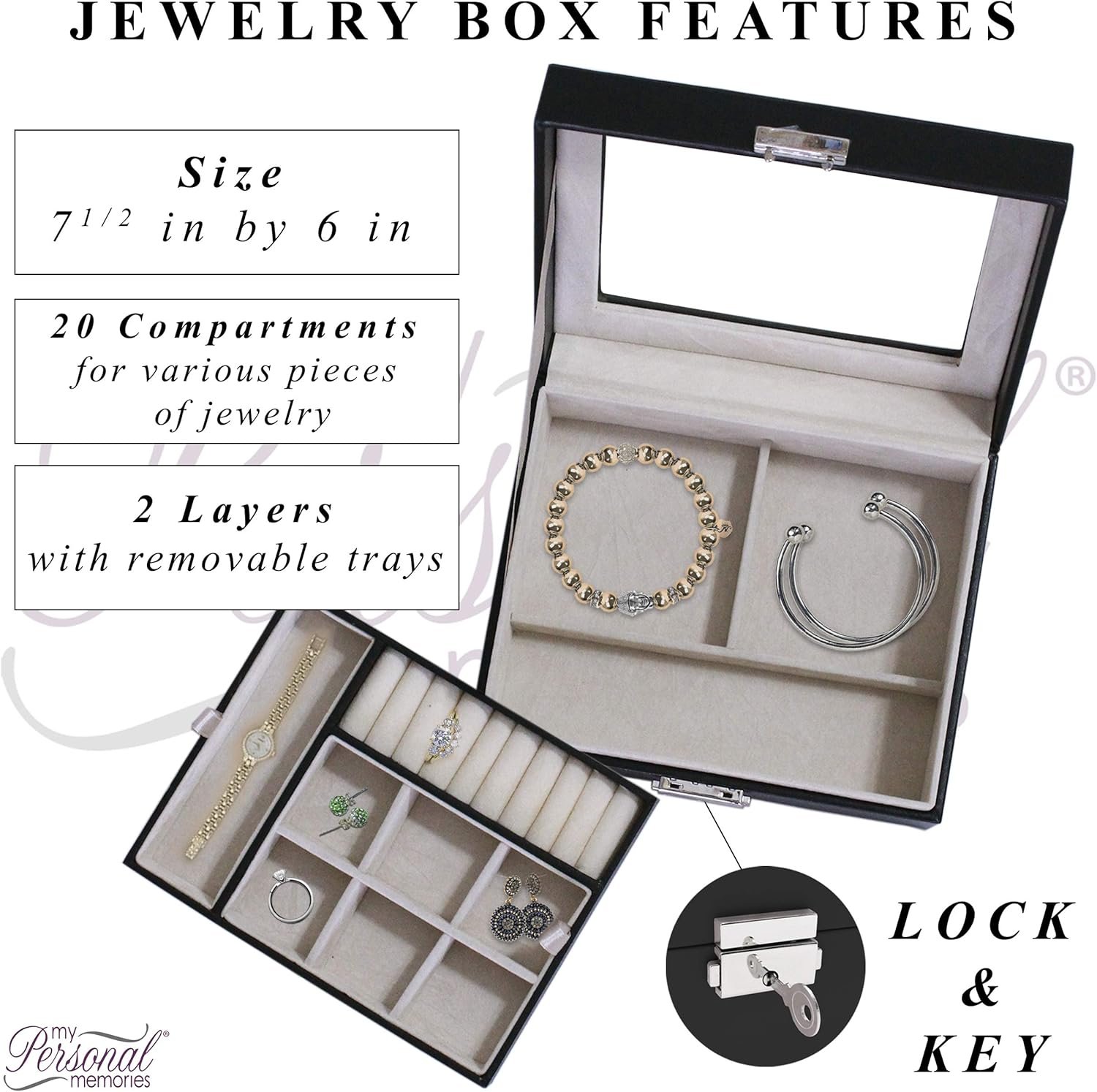 My Personal Memories Custom Personalized Jewelry Box, Tray & Organizer with Glass Top – Customized and Engraved Accessories Gift for Mom, Wife, Her (Medium 7.5″ X 6″, Midnight Black)
