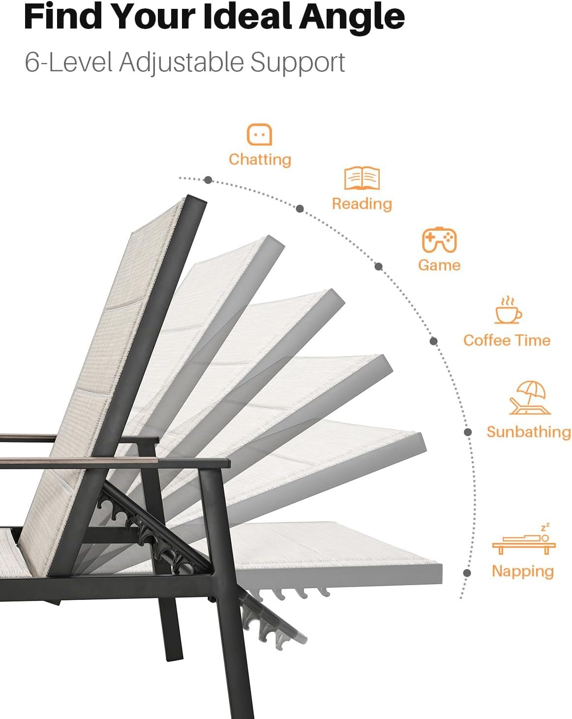 SET OF 2 · EASY ASSEMBLY & 7×24 SUPPORT: This set of two lounge chairs arrives 95% pre-assembled in one package for fast, straightforward setup. (Note: Do not fully tighten screws until assembly is complete.) Our 7×24 customer support team is available to assist with assembly questions or product guidance, ensuring dependable support whenever needed.
