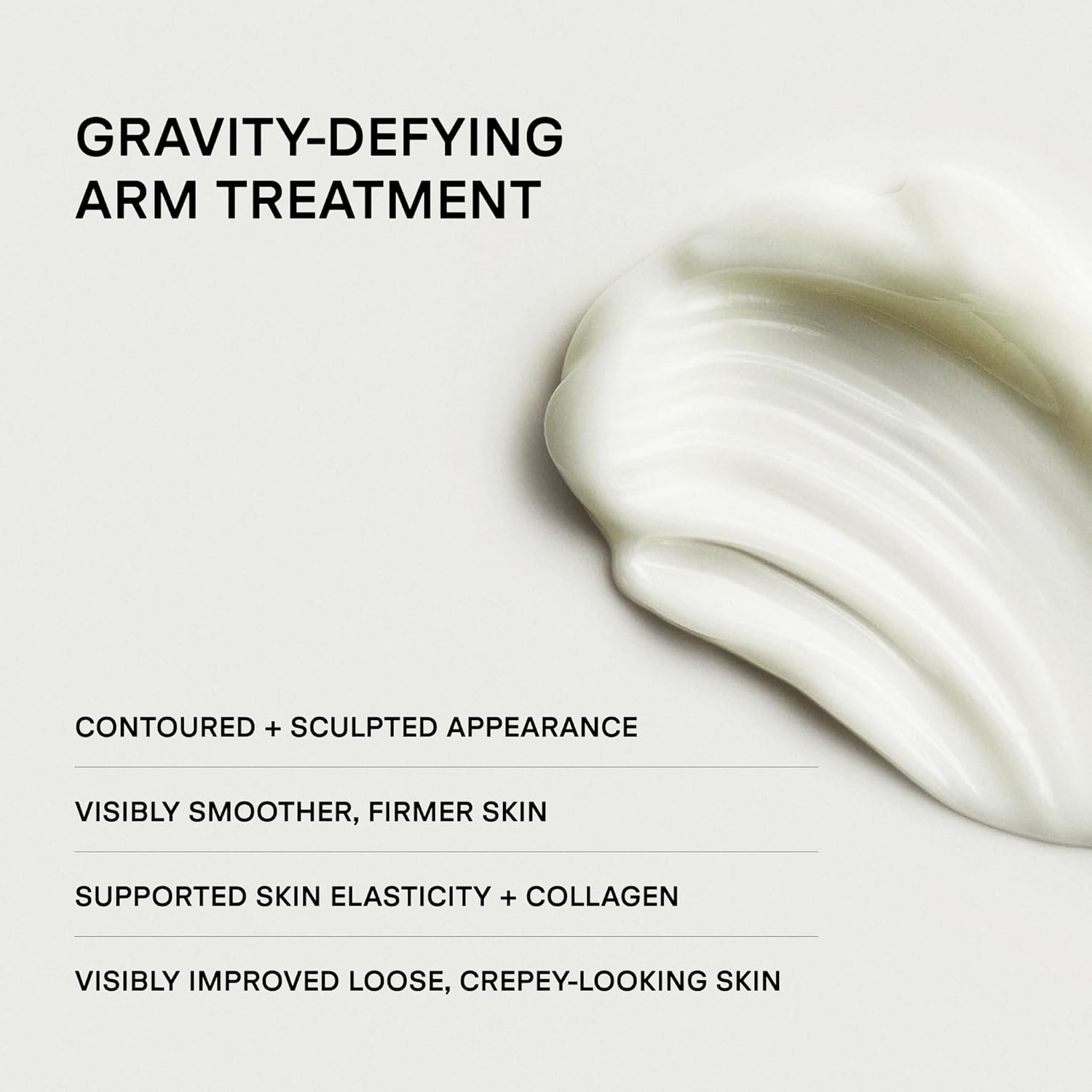 REVOLUTIONARY FIRMING TREATMENT: An anti-gravity cream with a clinically tested blend of antioxidants, caffeine, and retinol that visibly tighten and tone arms, neck, decollete, or anywhere experiencing loose and crepey skin.