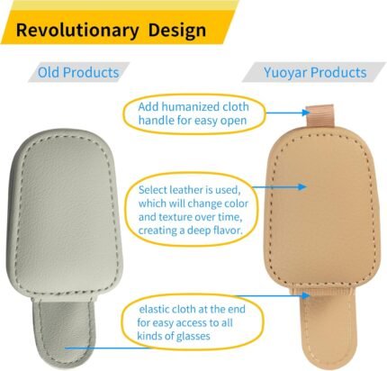Yuoyar Sunglass Holder for Car, Magnetic Leather Sunglasses Holder and Ticket Card Clip, Car Visor Accessories, 2 Packs (Beige)